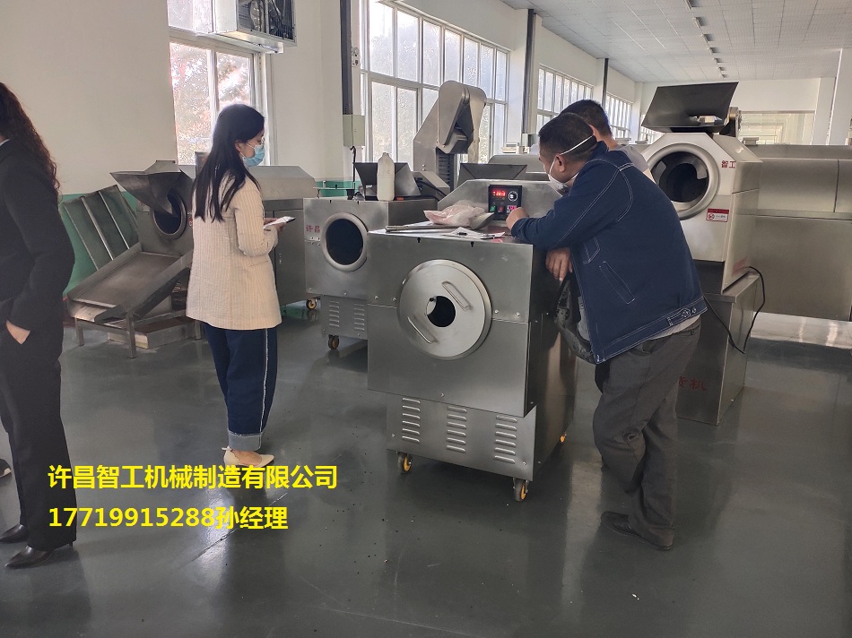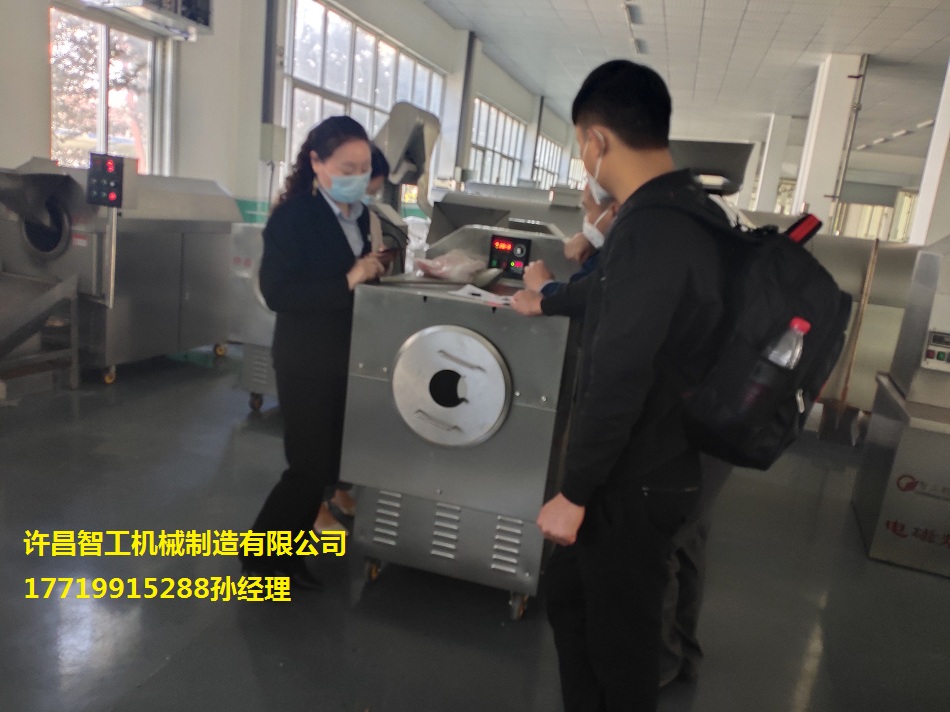 2020年4月24日,湖南客户父子二人乘高铁来许昌智工考察电磁炒板栗机和炒瓜子机,经过详细测试,现场采购两台门店使用的炒货机,感谢信任与支持!咨询热线:17719915288孙经理(微信同号)