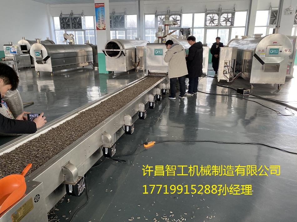 许昌智工汇保流水线设备可根据您需要炒制的物料选择锅内晒网圆孔尺寸以及流水线长度,智工汇保有现货成熟流水线炒货设备以及配套设备,包括提升机、冷却床、振动过滤风选机等。