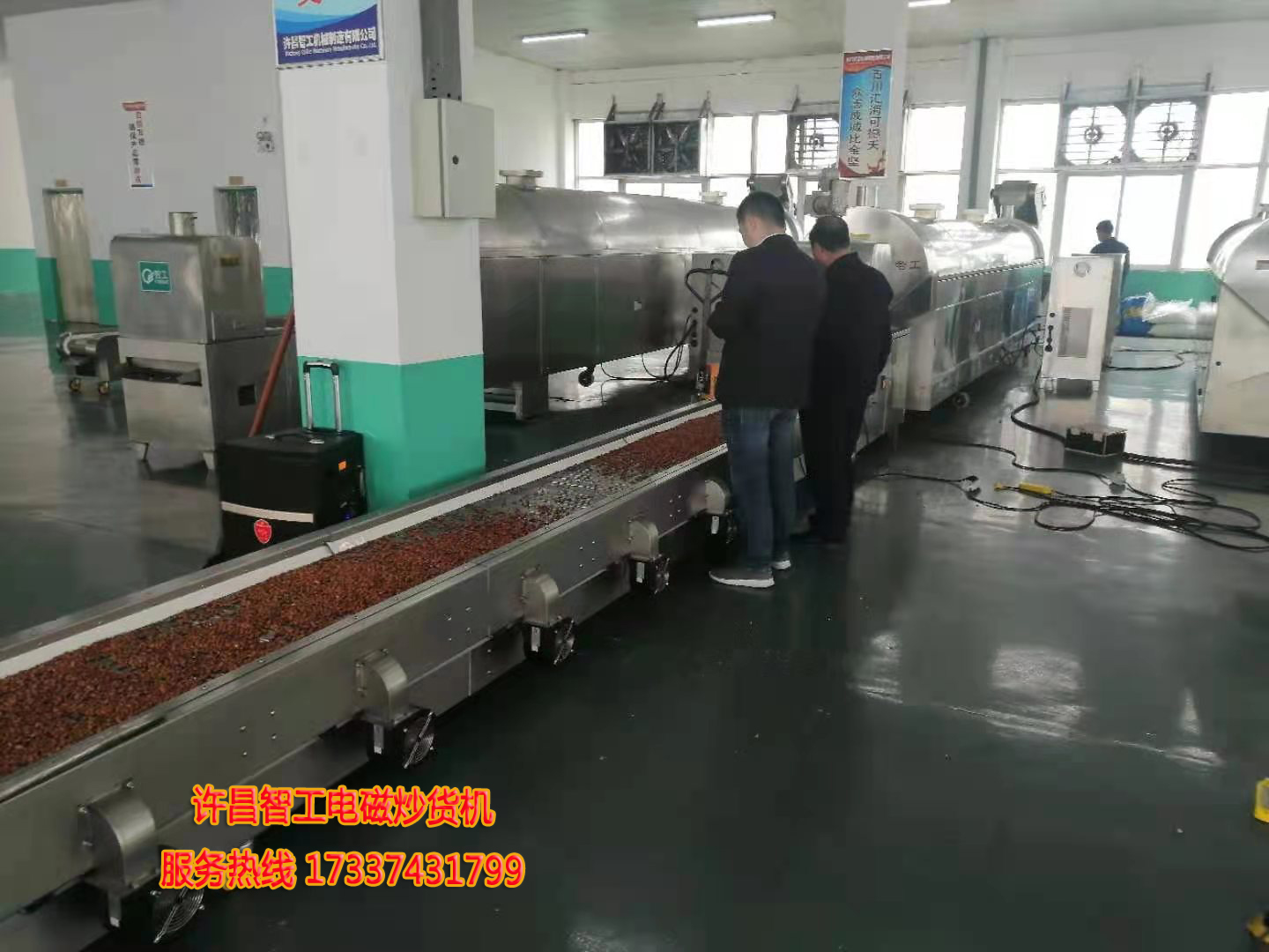 3.11日来自内蒙客户自带二百斤生花生米来厂试机6米电磁流水线炒花生米用来作酱,试机第一锅出来的时候,客户看了花生米的颜色和口感,就称赞,要的就是这种效果,就按着个参数把剩余的花生米炒制好就可以了,试炒完毕后当场付了订金,感谢客户对我们许昌智工的支持和信任,流水线设备需要订制大概时间20天,因此需要流水线设备的老板需要提前订机,以免耽误正常使用!!!!全国服务热线:17337431799