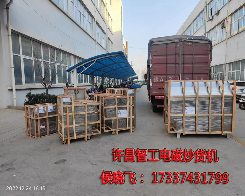 12.24日,许昌智工多台小型电磁炒货机发货全国各地。许昌智工电磁炒货机适用于炒栗子,炒花生,瓜子,核桃等几十种炒货食品,一机多用具有绿色环保保温节能,方便快捷省工省时,出品率高等优势性能,是目前理想先进的炒货设备,许昌智工炒货机采用的是不锈钢、钢炒制造的压滚转而成,机械性能稳定,采用全封闭皮带传动,布局合理,功耗低,效率高,安全,卫生,本机操作方便,拌和均匀,向顺方向转动正常炒货,向逆方向转动出炒栗和沙子,出来时炒栗和炒子自动分离十分方便。