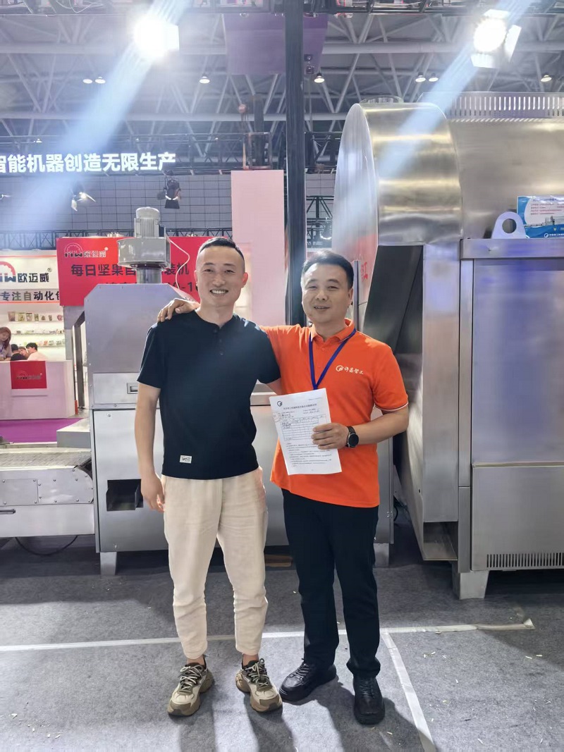 展会现场签约不断!山东客户选定许昌智工八米流水线电磁炒货机