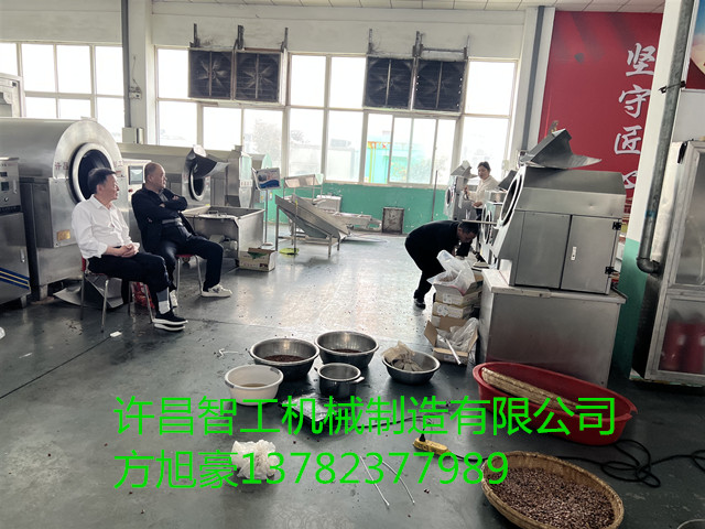 现场用小型电磁炒货机和流水线设备进行多方位试验炒制,客户非常满意。
