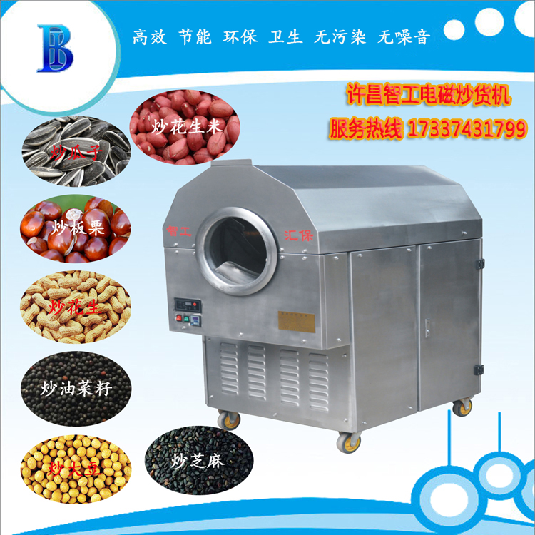可加工的范围广,适合大部分的坚果炒制,如:板栗、花生、瓜子、松籽、杏仁、菜籽、咖啡豆、红枣、芝麻、核桃各种豆类、麦类、米类等。适用于在食品加工厂、农贸市场、食品专卖店、连锁店等处定加工和经营,符合生产、创业致富的需求